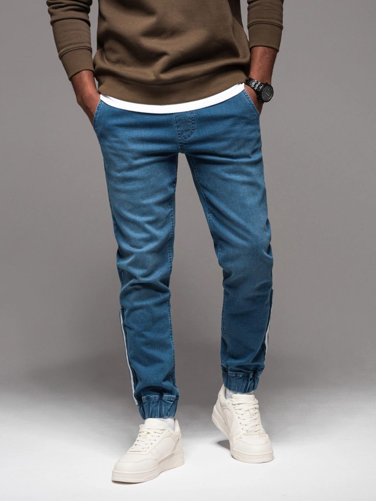 Jedinečné modré rifľové joggery s pásmi po bokoch PADJ-0156