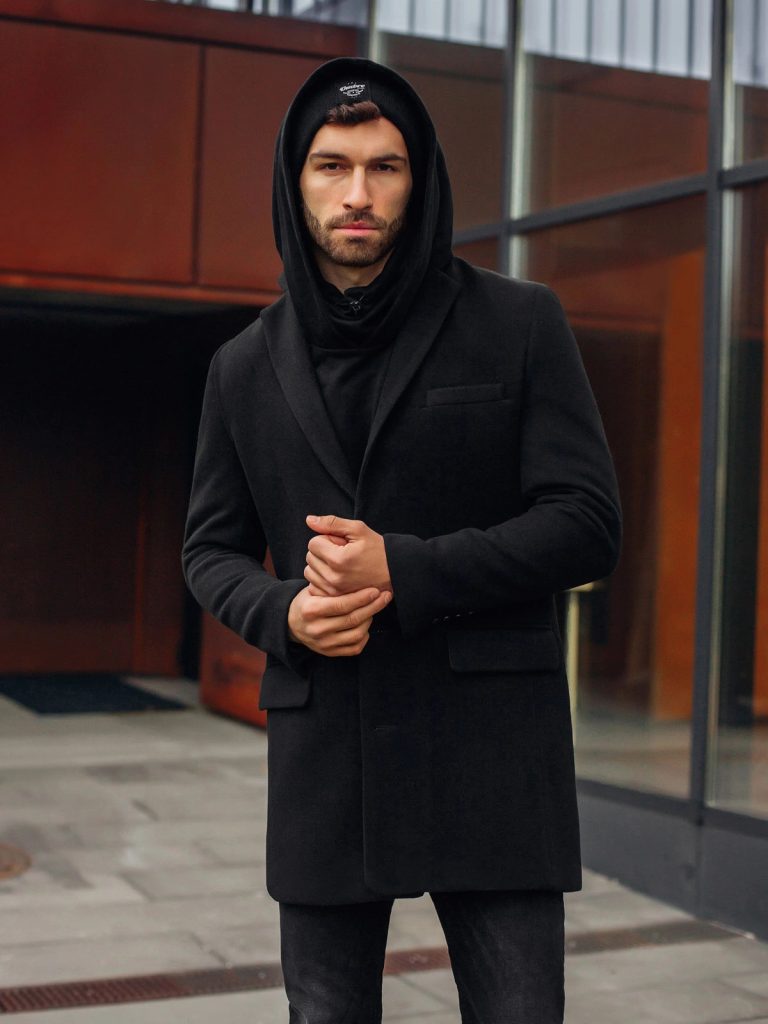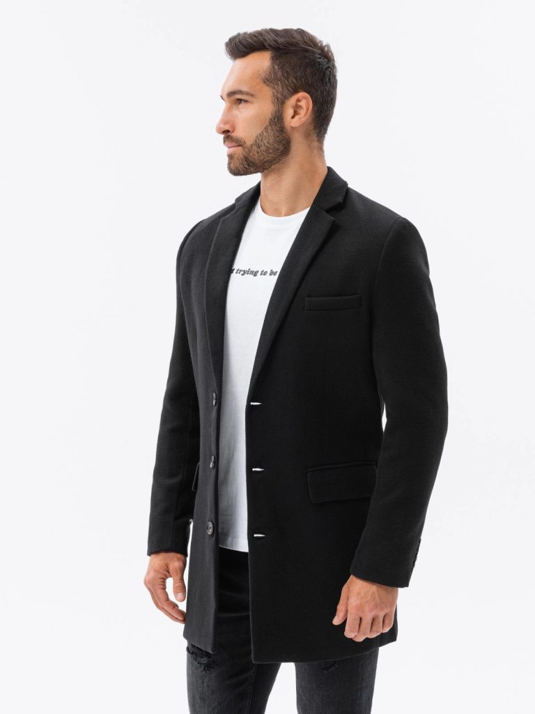 Pánsky kabát v módnom prevedení má rovný strih. Zapínanie na gombíky. Štýlový kabát obsahuje dve vonkajšie vrecká a jedno vnútorné vrecko. Na hrudníku sa nachádza ozdobné vrecko. Kabát je zateplený podšívkou a má elegantný zvinovací golier. Perfektný kabát na bežné nosenie počas prechodného obdobia.