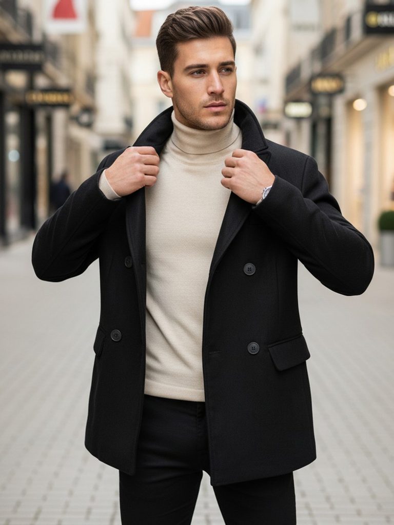 - pánsky zimný dvojradový kabát