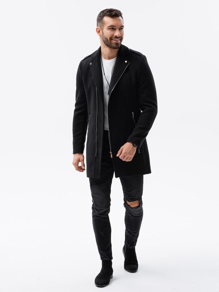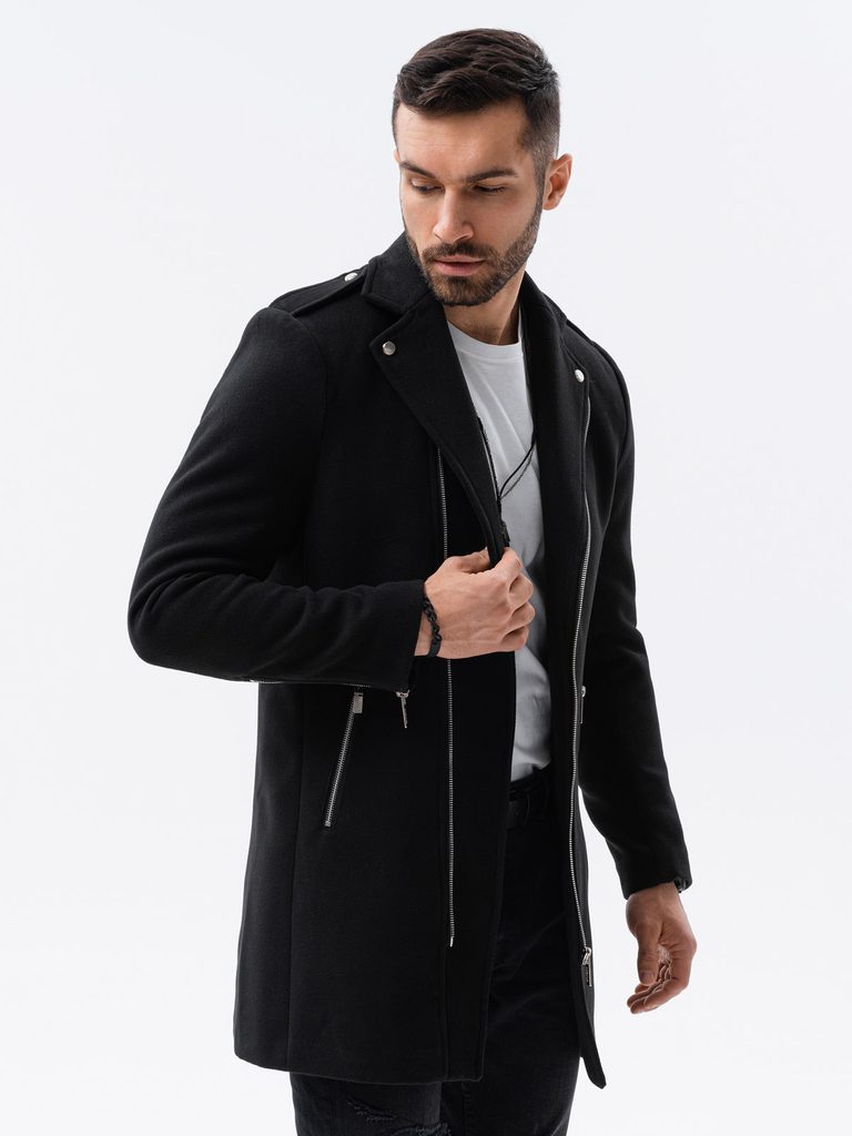 Zaujímavý kabát z príjemného materiálu disponuje zapínaním na šikmý zips. Kabát má rovný a užší strih. Súčasťou sú dve bočné vrecká na zips. Model odporúčame kombinovať s nohavicami z našej ponuky.