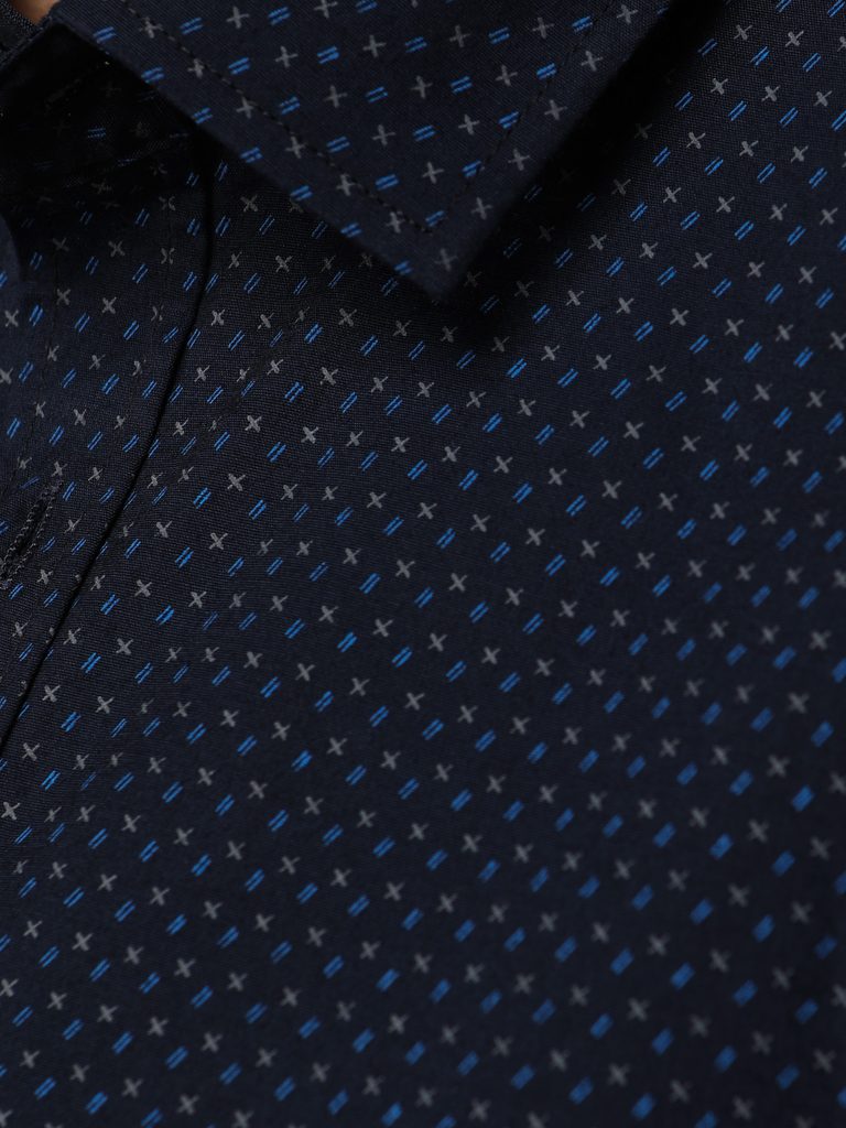 Granátová slim fit košeľa so originálnym modrým vzorom