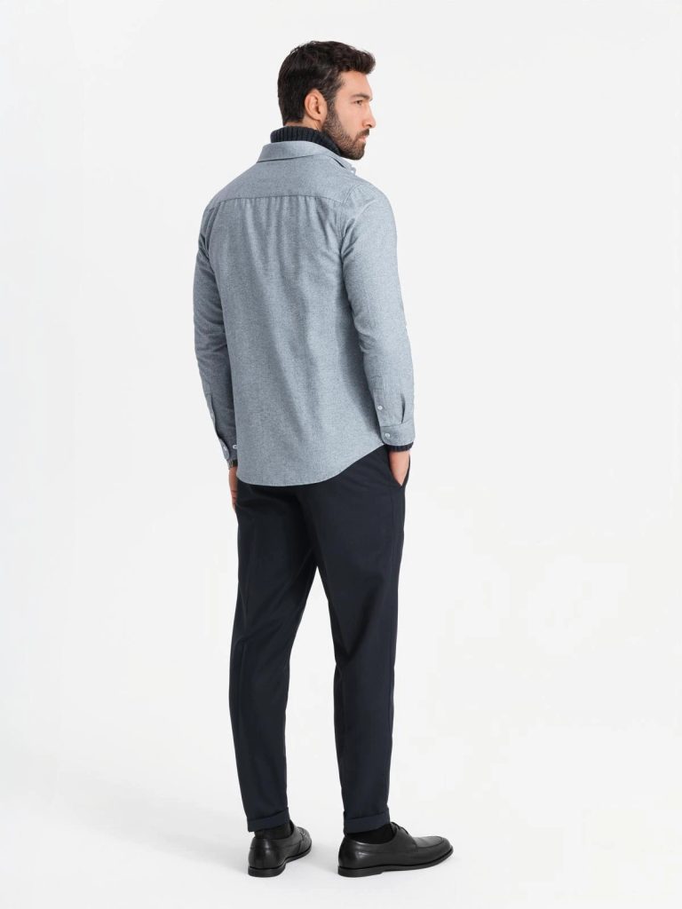 Ležérna šedá melírovaná košeľa s vreckom V3 SHCS-0148