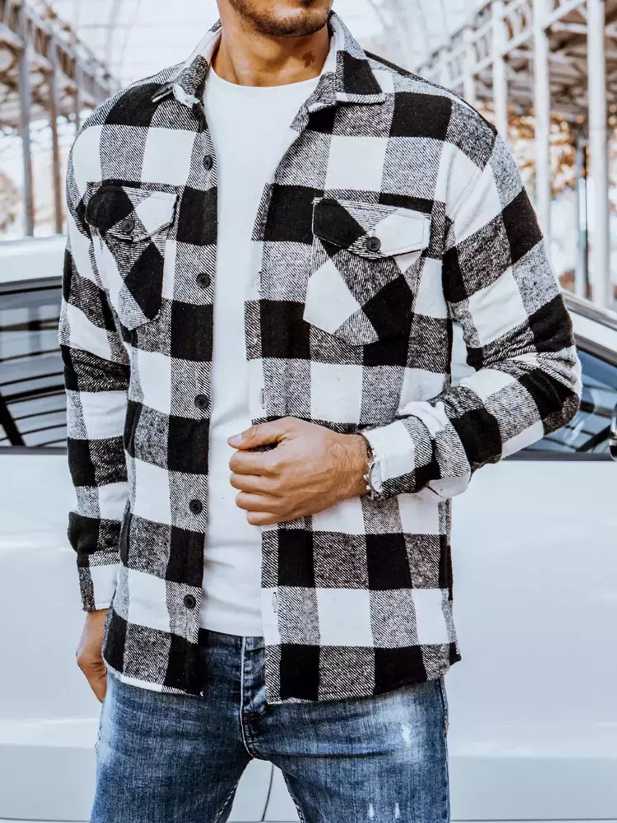 - pánska károvaná flanelová košeľa
