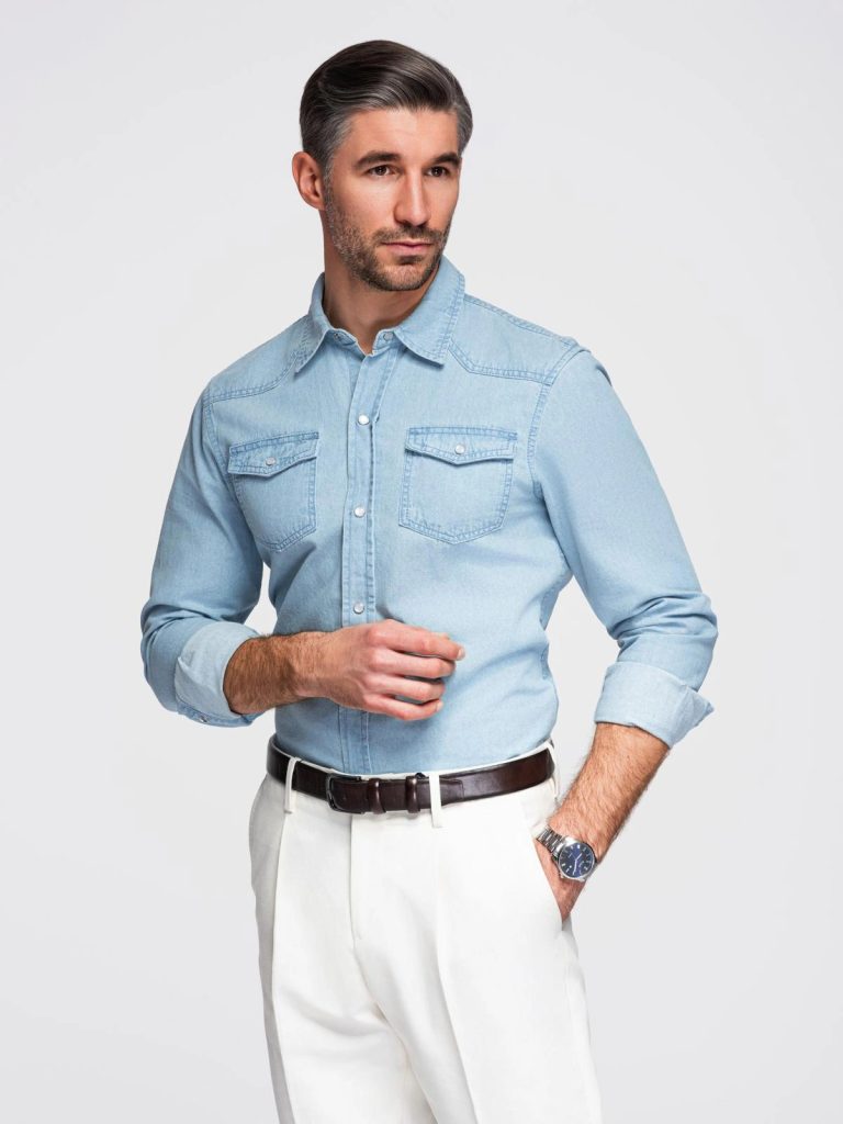 - košeľa vyrobená z ľahkého denimu