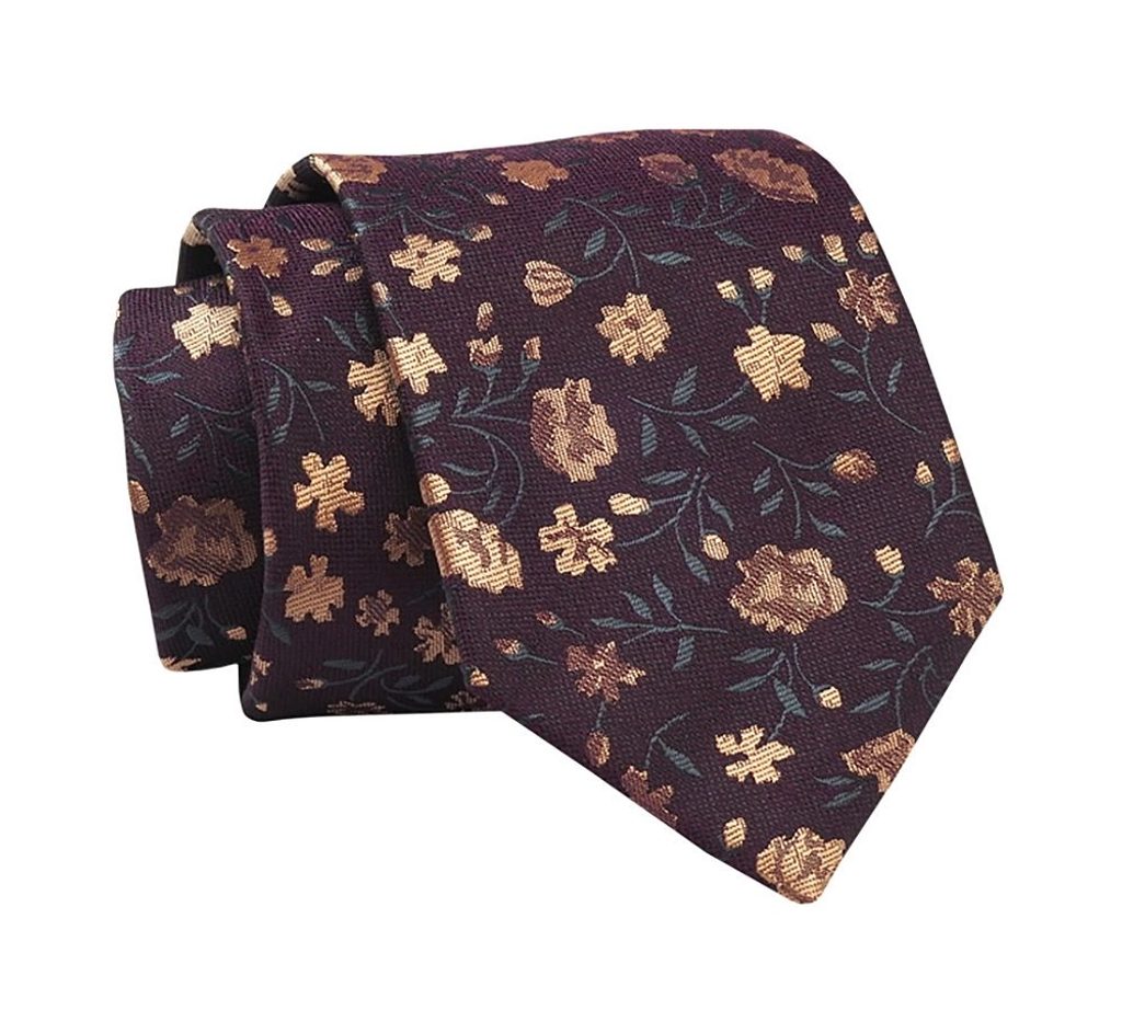 Pánska kravata v slivkovej farbe v elegantnom prevedení, ktorá je obohatená o nádherný kvetinový vzor. Vďaka kvalitnému materiálu si kravata drží svoj tvar a dobre sa viaže. Kravata má klasický strih. Módny doplnok perfektne doplní outfit každého elegantného muža.