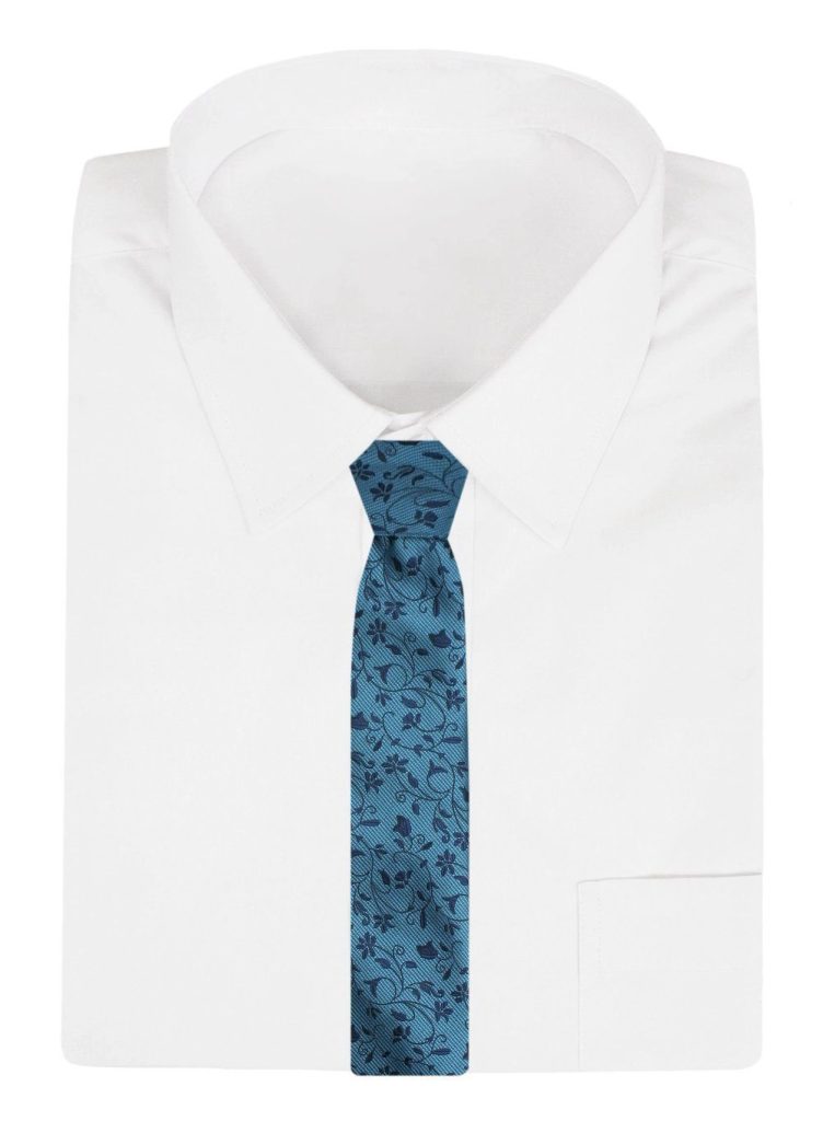 Módna pánska kravata v modernej modrej farbe v trendy prevedení, ktorá je obohatená o jemný kvetinový vzor. Vďaka kvalitnému materiálu si kravata drží svoj tvar a dobre sa viaže. Kravata má módny strih. Doplnok perfektne doplní outfit každého elegantného muža.