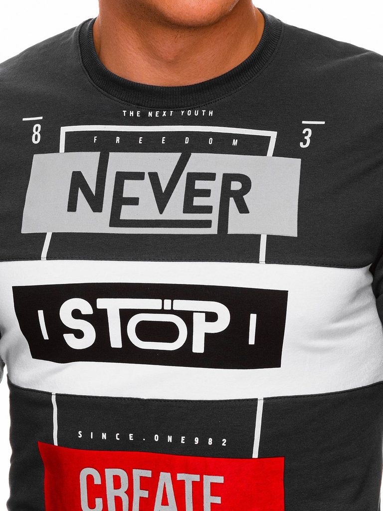 Trendová mikina bez kapucne disponuje okrúhlym výstrihom. Model je výrazný vďaka potlači na prednej strane. Spodná časť i rukávy sú zakončené lemom. Mikinu odporúčame kombinovať s jeansami z našej ponuky.