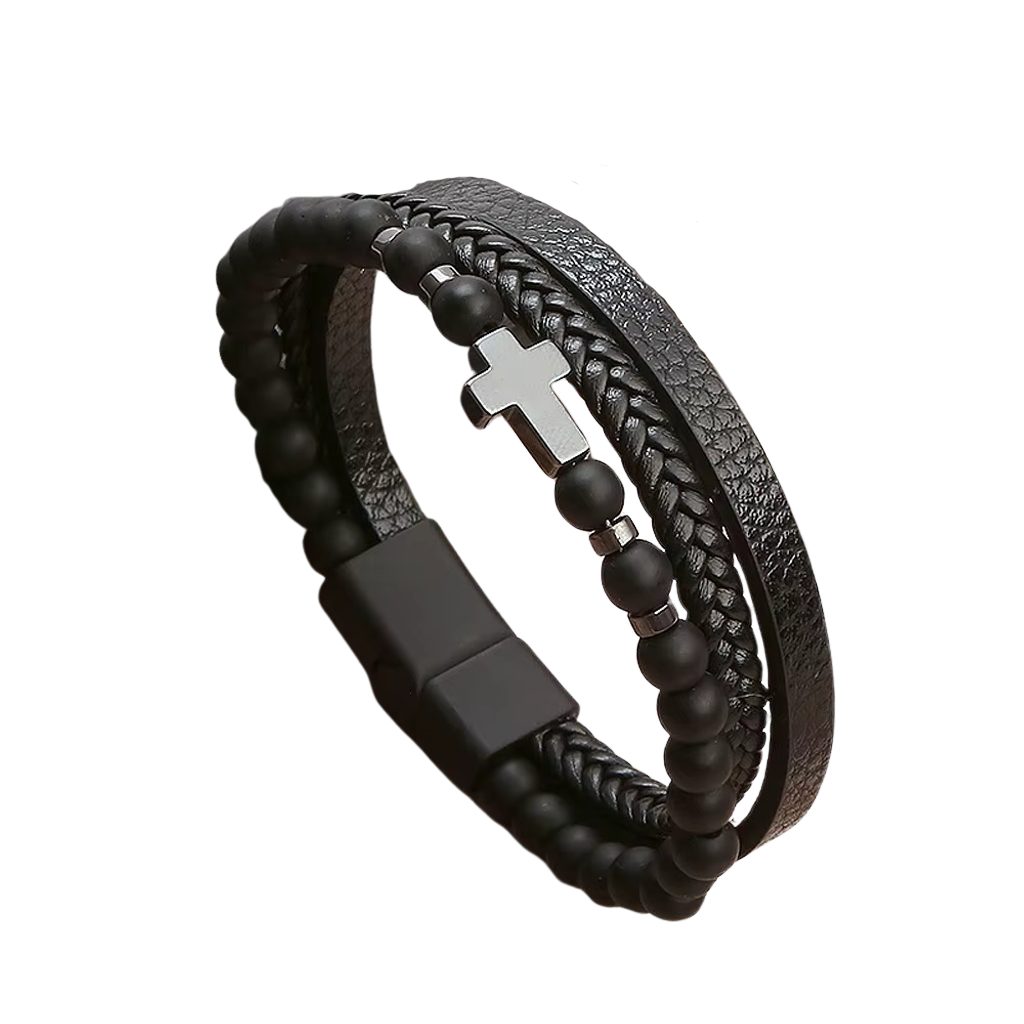 Štýlový pánsky náramok vyrobený z kvalitnej kože je doplnený o gorálkovú časť s ozdobným krížom. Tento náramok je vyrobený z vysoko kvalitných materiálov a je vyrobený tak, aby vydržal a bol odolný, čo zaisťuje, že zostane nadčasovým kúskom po celé roky. Praktické zapínanie na magnet.