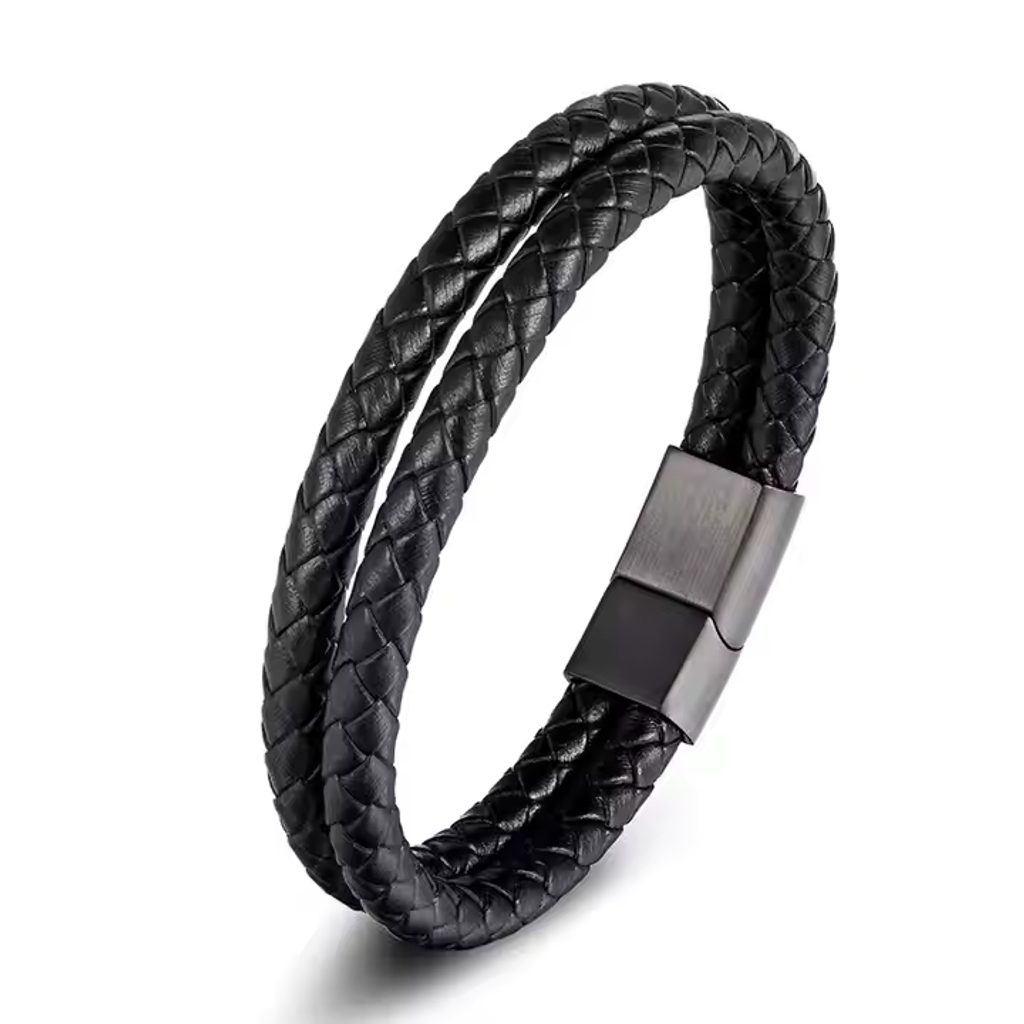 Pánsky prepletaný dvojitý náramok, ktorý by nemal chýbať vo vašom šatníku. Tento náramok je vyrobený z pravej kože a vysoko kvalitnej nehrdzavejúcej ocele, čo zaručuje dlhú životnosť.