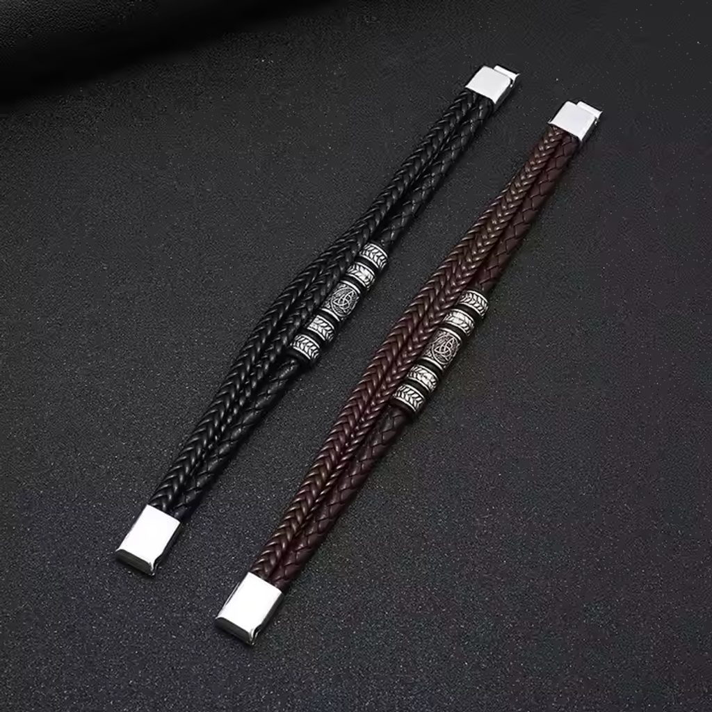 Pánsky kožný náramok v hnedom prevedení. Náramok je oživený trendy ozdobami. Zapínanie na magnet.