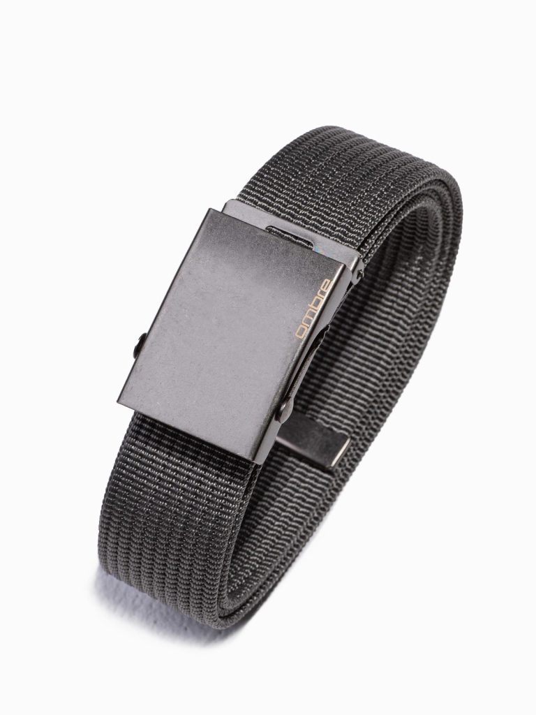 Pánsky látkový opasok s kovovou prackou a nastaviteľnou dĺžkou.