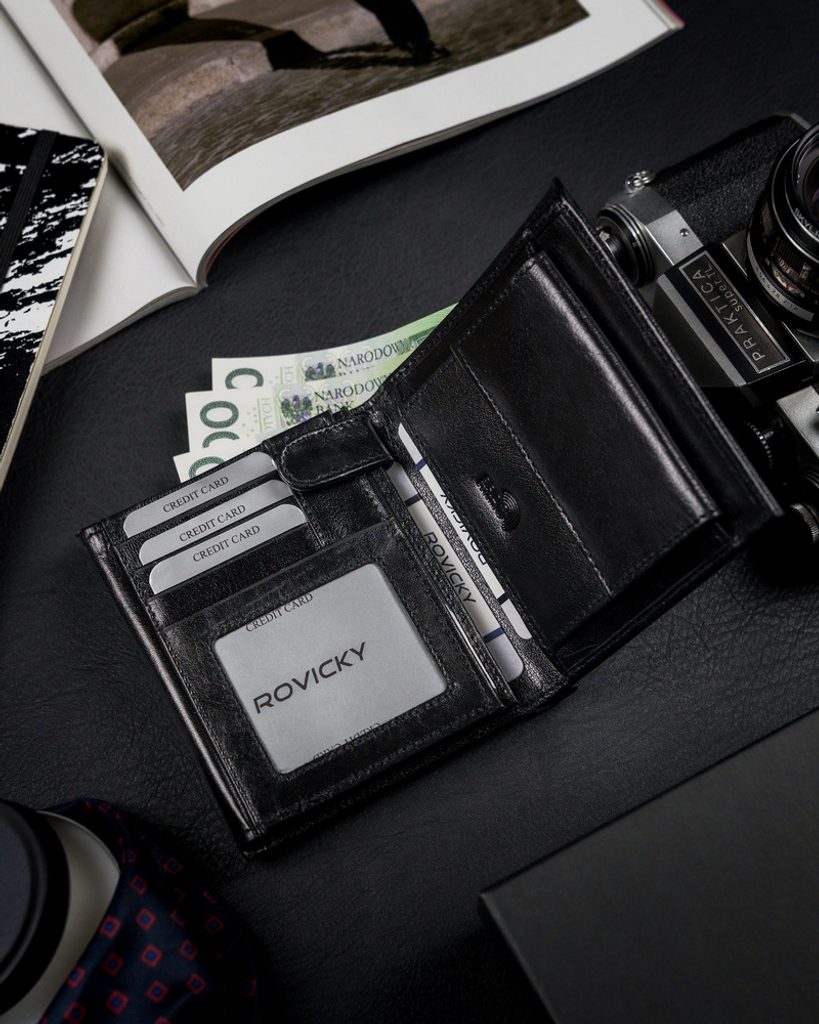 Kožená pánska peňaženka je vyrobená z kvalitného materiálu. Peňaženka v nádhernom dizajne disponuje úložným priestorom. Súčasťou peňaženky sú priehradky na bankovky, vizitky, kreditné karty a mincovník.