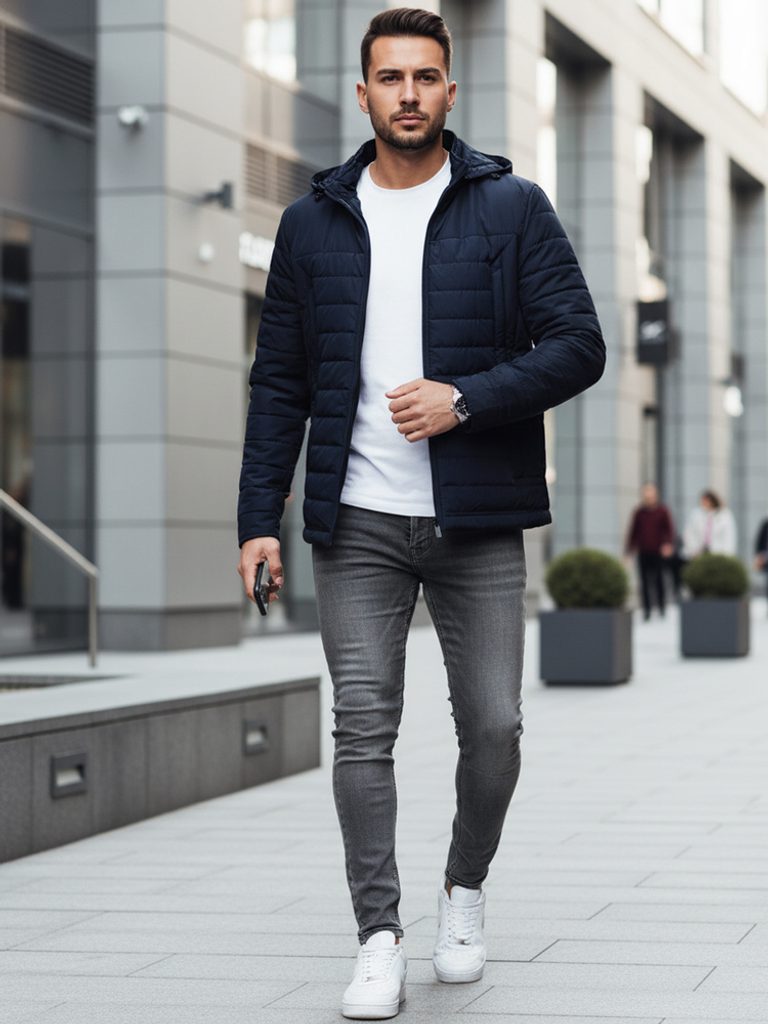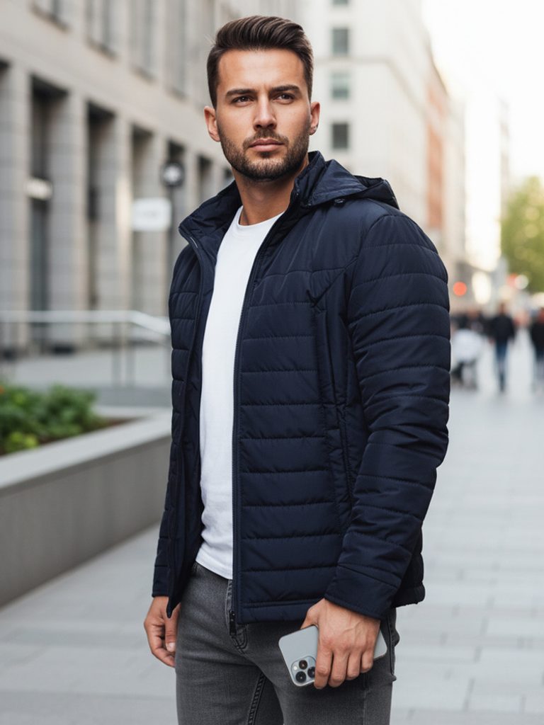 - pánska prechodná prešívaná bunda s kapucňou
