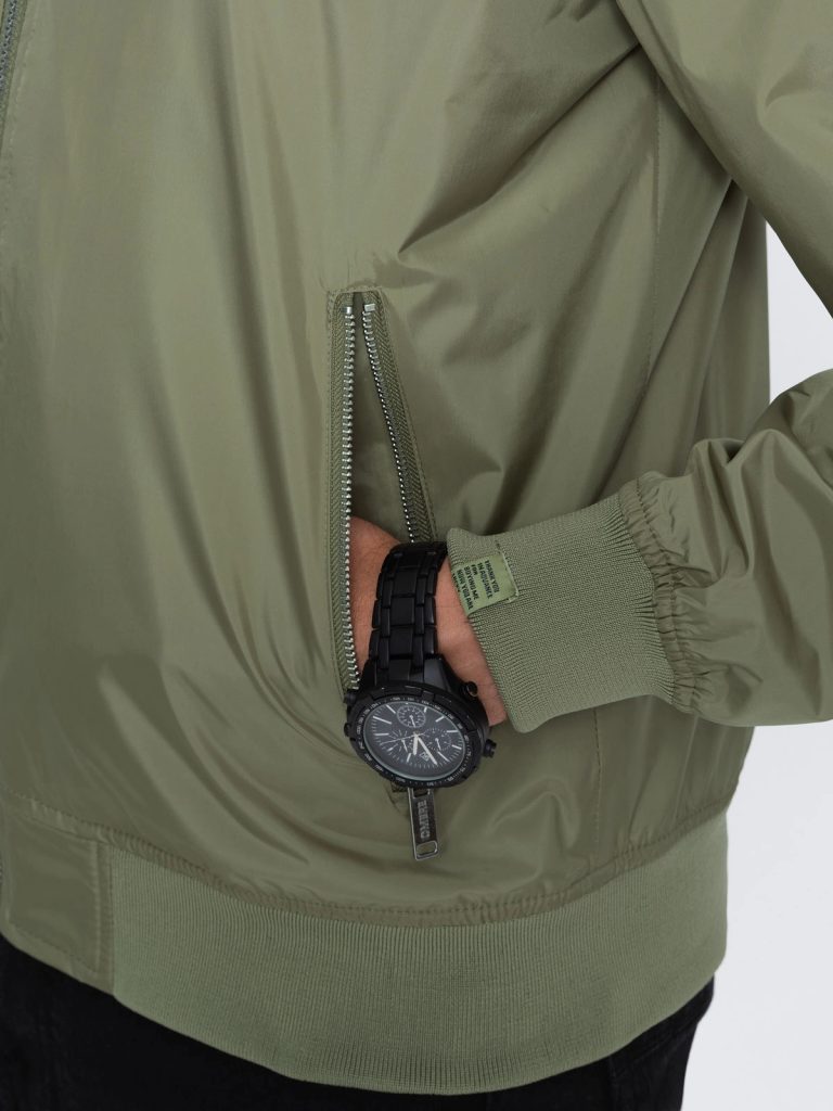 Klasická prechodná bunda typu bomber. Bunda je bez kapucne. Praktické vrecká po bokoch a jedno vnútorné. Bombera je vhodná na prechodné obdobie. Skvelo ukáže s džínsami či joggermi. Zapínanie bundy je na zips. Rukávy a spodná časť bundy je patentovaná.