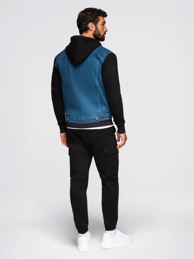 - bunda je zložená z rifľovej časti + mikinová časť: pletené rukávy a kapucňa