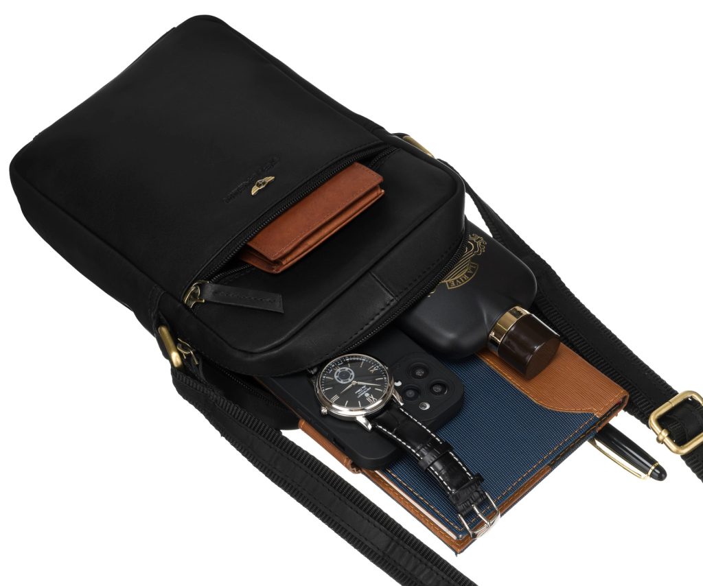 Iveta Škodová, 03.11.2025Moderná čierna pánska taška cez plece je vyrobená z kvalitného koženého materiálu. Taška obsahuje praktické vrecká a množstvo úložného priestoru. Súčasťou tašky je aj kožené puzdro. Kožené puzdro/mini peňaženka slúži na odkladanie drobností, kariet alebo mincí a dizajnovo ladí s hlavnou taškou.