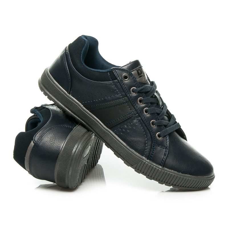 Namiesto klasiky môžete zvoliť tmavomodré sneakersy s lesklou koženou špičkou. Lesklá koža pridáva na elegancii a tej správnej dávke originality.