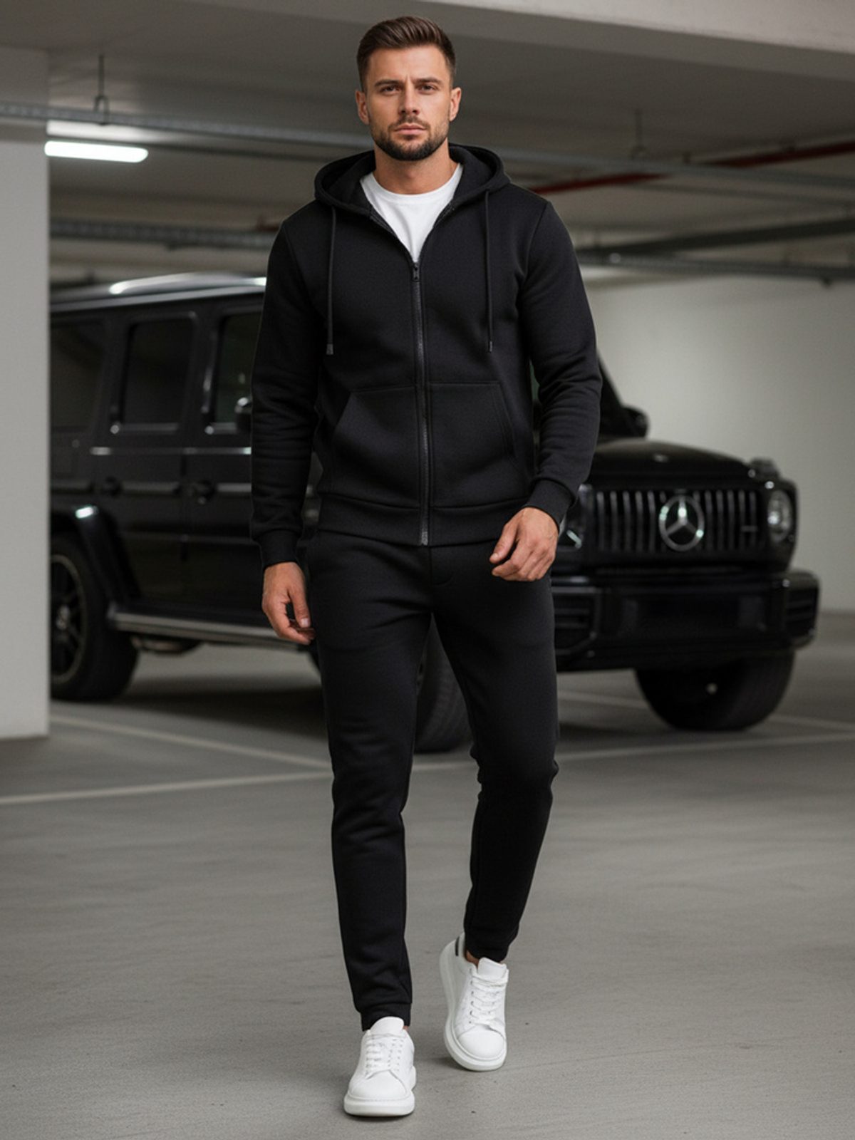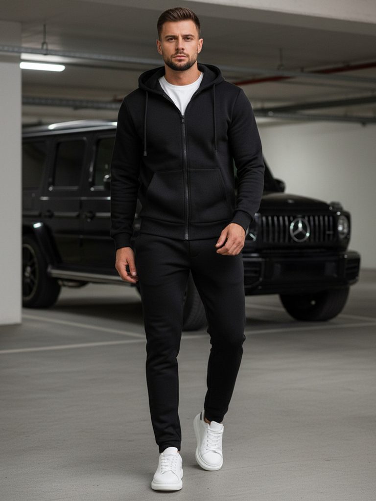 Jana Feherova, 18.12.2025Tepláková súprava v jednoduchom prevedení. Súprava je vyrobená z mäkkého a príjemného materiálu. Obsahuje mikinu so zapínaním na zips s kapucňou. Dvojvrstvová kapucňa disponuje sťahovacou šnúrkou, prostredníctvom ktorej je možné regulovať veľkosť. V prednej časti mikiny sa nachádzajú dve vonkajšie vrecká. Spodná časť i rukávy sú zakončené lemom. Tepláky typu jogger majú dve predné vrecká. Pás teplákov je možné regulovať šnúrkou. Spodná časť teplákov a pás je ukončený lemom. Tepláková súprava je vhodná na každodenné nosenie.