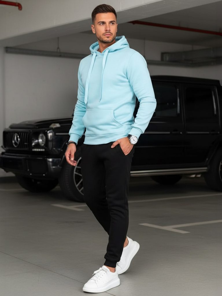 Pohodlná blankytne modro-čierna tepláková súprava