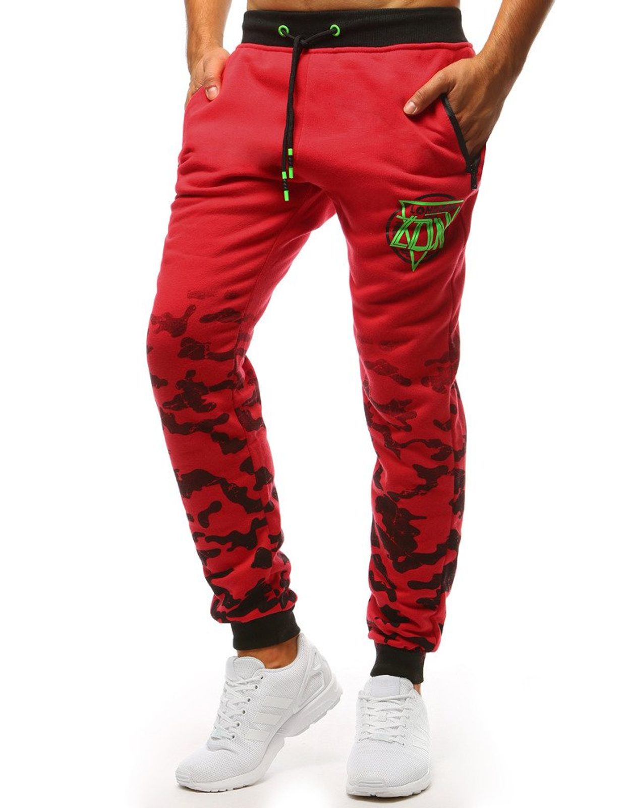 Štýlové tepláky sú vyrobené z mäkkého a príjemného materiálu. Pás i spodná časť je zakončená lemom. Súčasťou je šnúrka, pomocou ktorej je možné regulovať veľkosť pásu. Tepláky majú dve bočné vrecká so zapínaním na zips. Súčasťou modelu je potlač a maskáčový dizajn. Tepláky sú pohodlné, ideálne na každodenné nosenie.