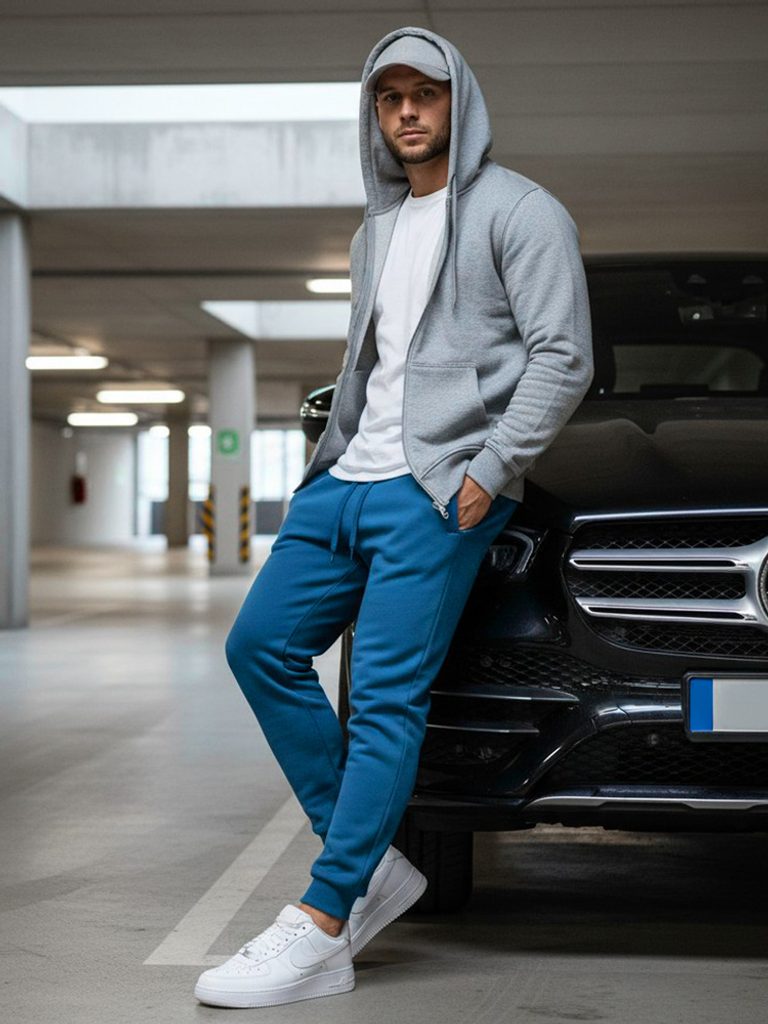 Tepláky v jednoduchom prevedení sú vyrobené z mäkkého a príjemného materiálu. Pás i spodná časť je ukončená lemom. V páse sa nachádza šnúrka, pomocou ktorej je možné regulovať veľkosť v prípade potreby. Súčasťou modelu sú dve predné vrecká. Tepláky sú pohodlné a ideálne na každodenné nosenie.