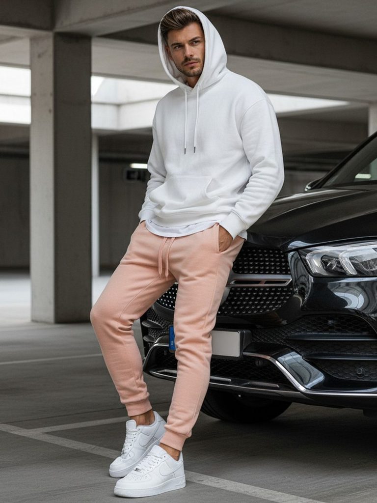 Tepláky v jednoduchom prevedení sú vyrobené z mäkkého a príjemného materiálu. Pás i spodná časť je ukončená lemom. V páse sa nachádza šnúrka, pomocou ktorej je možné regulovať veľkosť v prípade potreby. Súčasťou modelu sú dve predné vrecká. Tepláky sú pohodlné a ideálne na každodenné nosenie.
