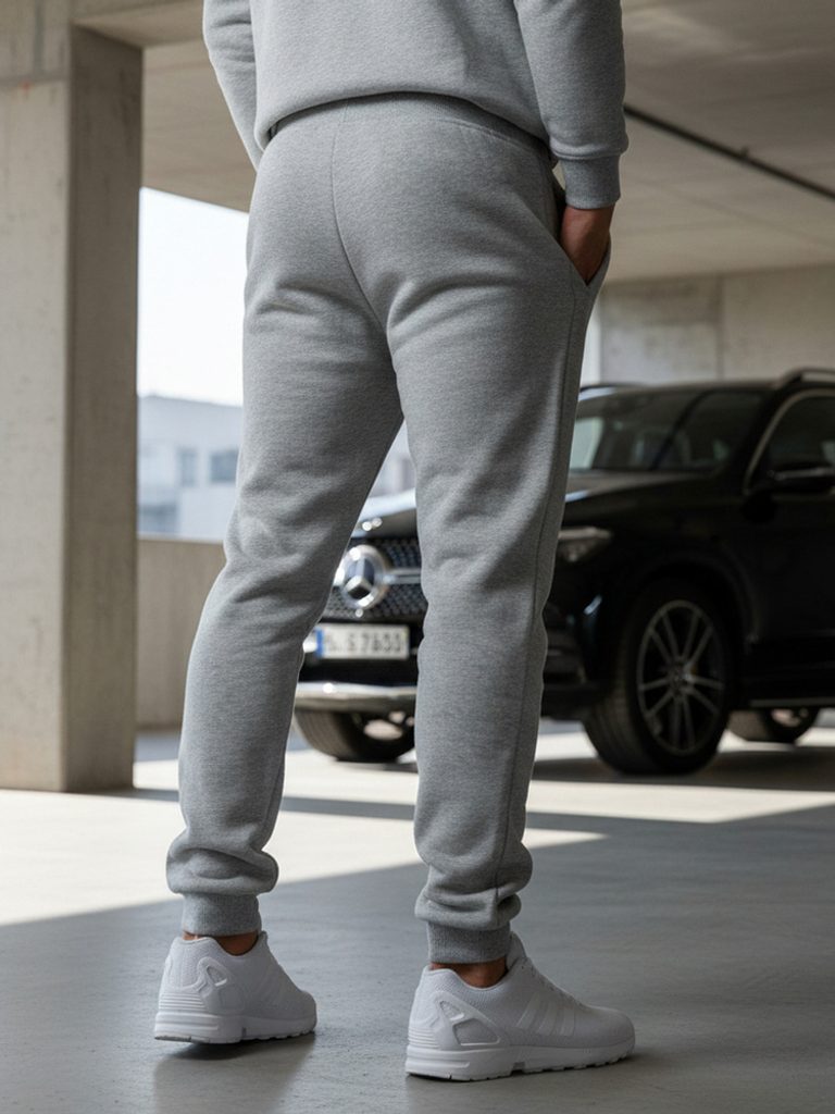 Tepláky v jednoduchom prevedení disponujú dvomi vreckami. Spodná časť je ukončená lemom a pás je možné regulovať pomocou šnúrky. Šedé tepláky sa ľahko kombinujú s pohodlným tričkom.