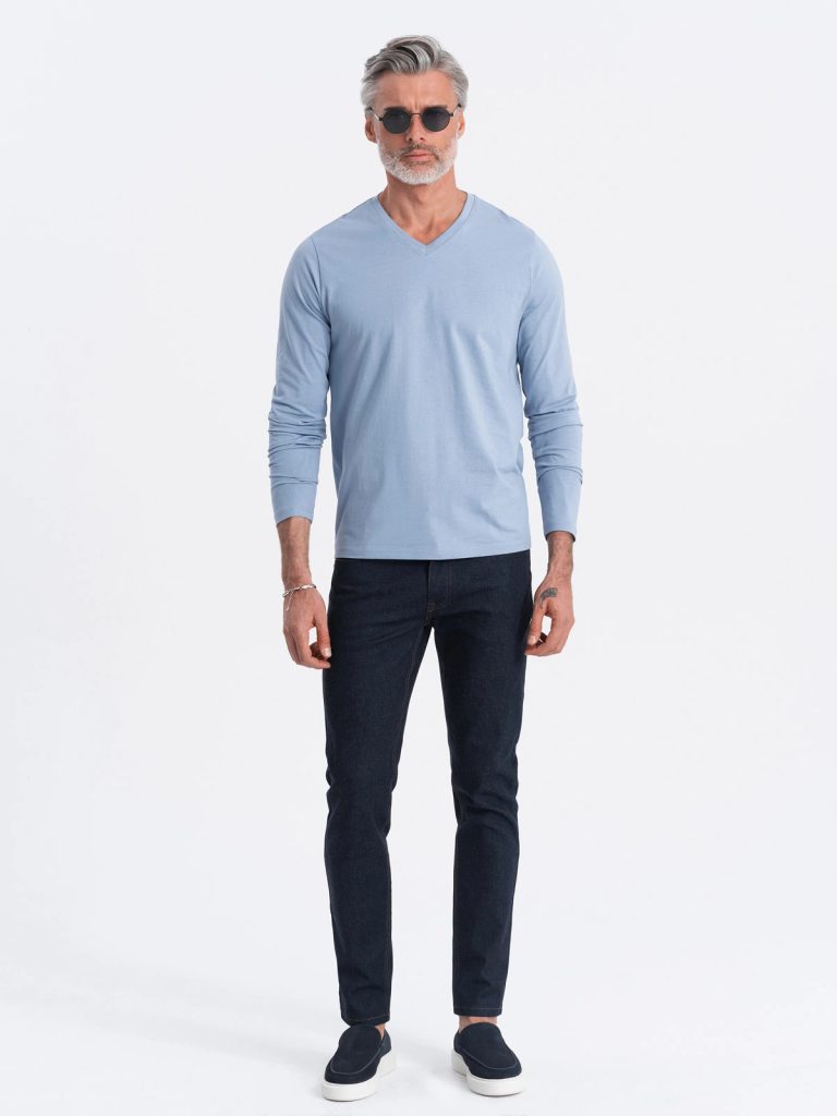 Modré tričko s dlhým rukávom a V-výstrihom V9 LSBL-0108