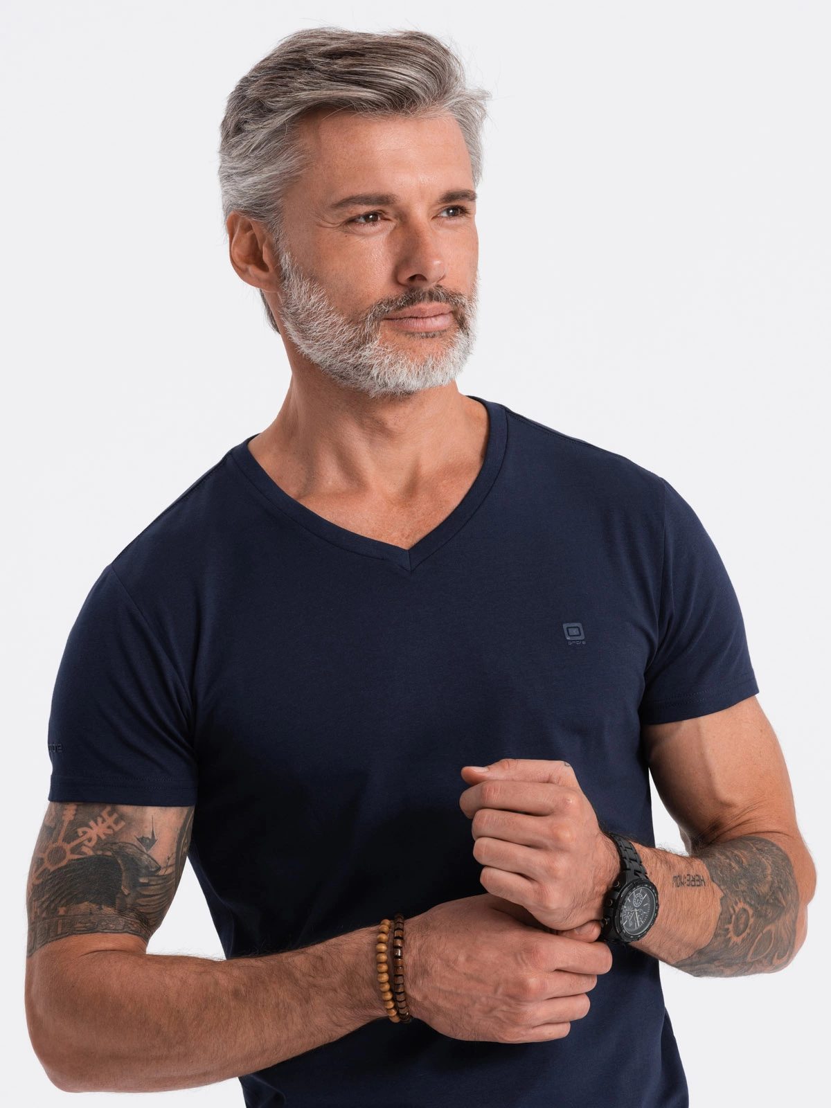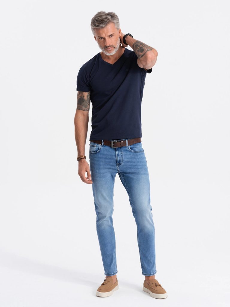 Tričko v jednoduchom prevedení disponuje výstrihom v tvare V. Na hrudi a ramene je zdobené logom výrobcu OMBRE. Tento univerzálny kúsok ľahko skombinujete s rôznymi druhmi nohavíc z našej ponuky.