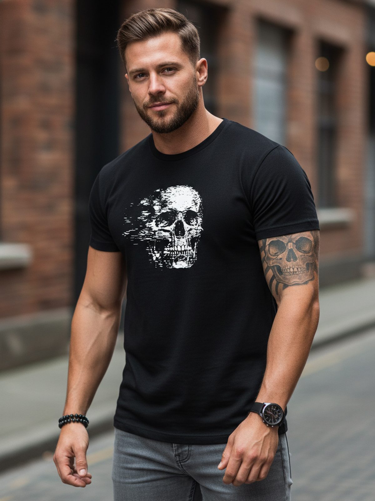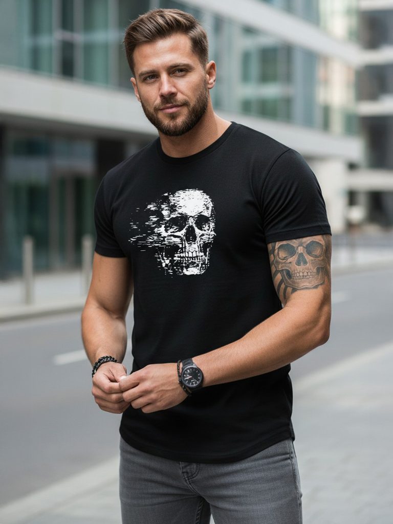 Pánske čierne tričko s potlačou v dynamickom efekte