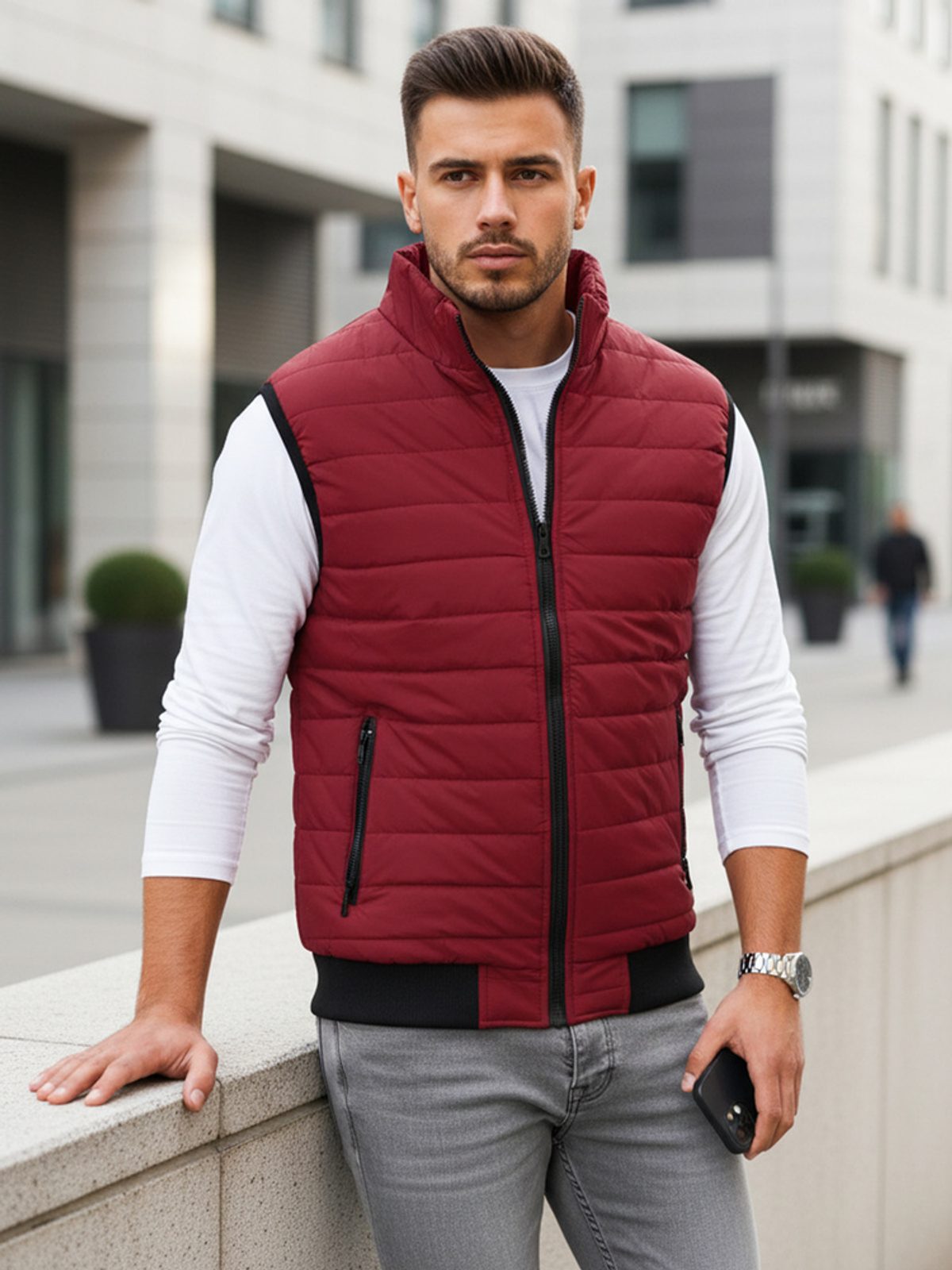 Bozena Tibenska, 12.03.2026Prešívaná vesta bez kapucne disponuje zapínaním na zips. Vesta obsahuje dve vonkajšie vrecká na zips. Otvory na ruky sú ukončené elastickým lemovaním. Spodná časť je zakončená lemom. Súčasťou je podšívka a vyvýšený golier, ktorý zahreje. Model odporúčame kombinovať s jeansami z našej ponuky.