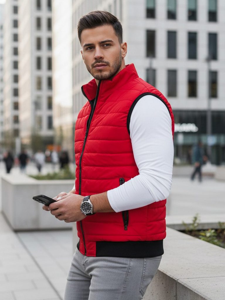 Bozena Tibenska, 12.03.2026Prešívaná vesta bez kapucne disponuje zapínaním na zips. Vesta obsahuje dve vonkajšie vrecká na zips. Otvory na ruky sú ukončené elastickým lemovaním. Spodná časť je zakončená lemom. Súčasťou je podšívka a vyvýšený golier, ktorý zahreje. Model odporúčame kombinovať s jeansami z našej ponuky.