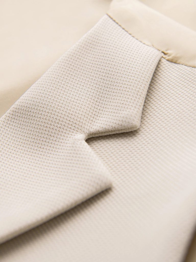 - lesklý povrch látky v zadnej časti vesty